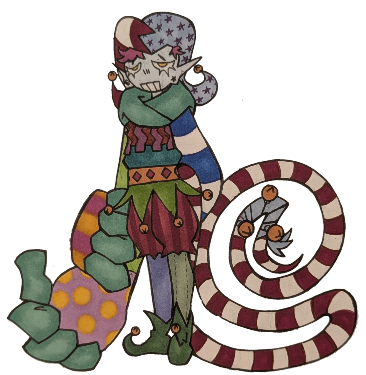 Lialphezneflau is an old entity that has been roaming the Earth for hundreds of years. He comes from a species, named Ammiiae (see more with the "Species Information" tab), which has a lifespan of what seems to be infinite.Most of his life he spent serving a royal family, watching each generation go by as they were birthed, and grew, and inevitably met death. He was a court jester, as well as a trusted advisor, servant and close friend to all in the family. Lial felt it was his life's purpose to serve this family and watch them grow.Lial only truly bonded to one family member, though. He was one of the many Kings that had ruled the kingdom during Lial's time alive, and he was special in one way: he was completely passive, and had no desire to rule the land for benefit. He regularly interacted with citizens, often dressing in peasant clothes and partaking in low-class activities. The King was seen more of a father to everyone rather than royalty, and it was unheard of to hate him. Everyone was happy, content with life, and somehow, the kingdom functioned on the King's joyful demeanor. It was like this for years, and he and Lial were best friends during this time.The King also had a son, Tobias, who Lial was often tasked with watching over. Tobias had a friend, Aurvoscios, a young warlock. The two of them managed to cause an incredible amount of trouble around the palace, and so Lial was constantly busy making sure the two didn't end up getting themselves killed, as Tobias was quite fond of using dangerous magic he had no familiarity with. He was an incredibly curious boy, and he was also stubborn and rash. This would prove to be an issue as time went on, and Tobias pressured Aurvoscios to push more and more to find something "fun" to try out, up until Tobias got them both injured with his impatience. Lial felt it best to have the two seperated for some time, and he went on as normal, thinking nothing of it.Tobias simply could not let it be. He began to mess with things he should not have messed with, and soon found himself with a new friend- an entity that called himself Tenebris, and Tenebris offered to give Tobias access to whatever knowledge in the world he wanted. Tobias accepted, listening to whatever instructions Tenebris gave him: isolate yourself from your family, focus all your attention on me, do not eat unless it is food I give you, destroy your beloved belongings until nothing remains but us. Tobias never questioned a thing, following along blindly out of pure curiosity and excitement.